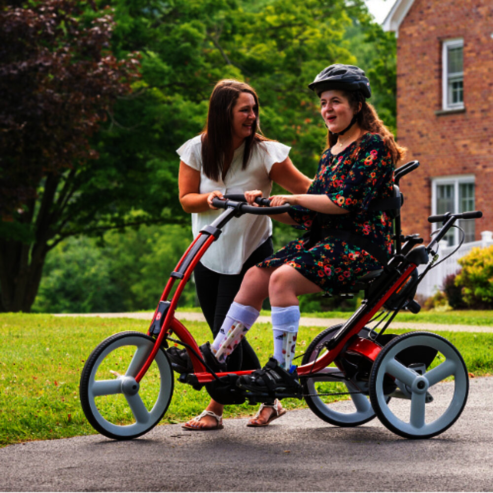 - Pedals adjust forward and backward on a pedal crank to position the driver's feet