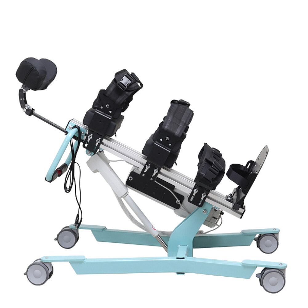 The multi-position tilting table allows the user's position to be adjusted from horizontal to vertical. It is a model for the supine position. It is controlled electrically or pneumatically.