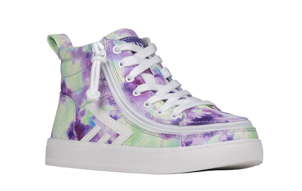 The Purple Watercolour BILLY CS High Tops combine nostalgia with modern style. Featuring functional laces, removable insoles, and a zipper, they offer perfect comfort and a customizable fit.