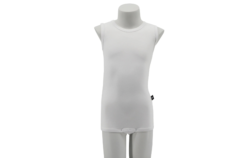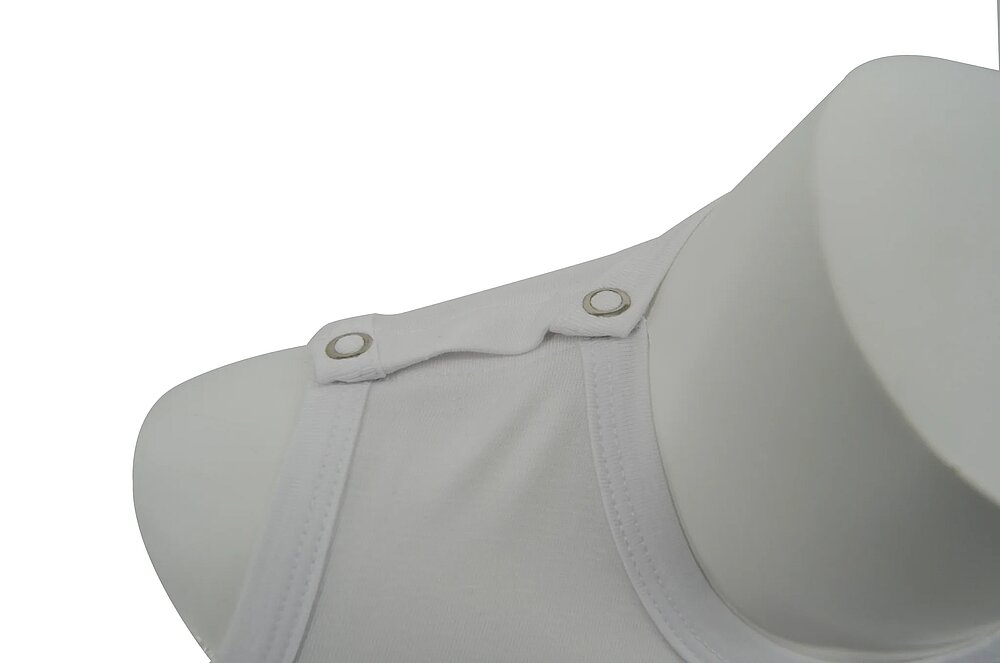 The bodysuit features additional snap buttons on the shoulders to facilitate easy removal under clothing. There are also 3 snap buttons at the bottom. The bodysuit is made from 68% bamboo, 28% cotton, and 4% elastane. Bamboo is known for its wonderfully soft and cool feel, and its quality remains optimal even after frequent washing. The addition of 4% elastane ensures the bodysuit's stretchability. All JOF bodysuits are OEKO-TEX certified. Please exercise caution when using the snap buttons to prevent fabric tearing. Also, please take into account a minimum shrinkage rate of 5%.