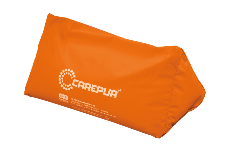 The CAREPUR delta cushion, shaped like a prism, is mainly used for 30° lateral positioning. It provides targeted support for the shoulders, back or pelvis and offers stable positioning thanks to its wide underside and non-slip cover. In the supine position, it is also suitable for supporting knee bends, preventing fallen arches or for 135° positioning. In the sitting position, it can be used as a support for a hemiparetic arm.