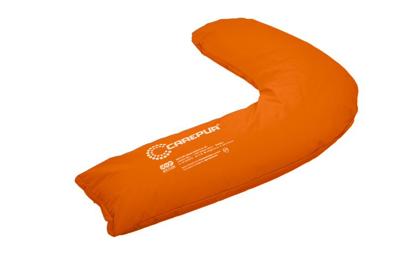 The CAREPUR Half-Moon Cushion is a versatile, crescent-shaped cushion designed for positioning and pressure relief of various body areas. It is primarily used in the supine position, where it supports the head, neck, shoulders, and arms, promoting body awareness. The cushion can also be placed under the thighs to relieve pressure on the buttocks and sacral area, while providing knee support. In the lateral position, it stabilizes the shoulder, back, and pelvis, as well as facilitates leg abduction. It is also suitable for 135° side-lying positions, where it supports the thoracic and abdominal areas.