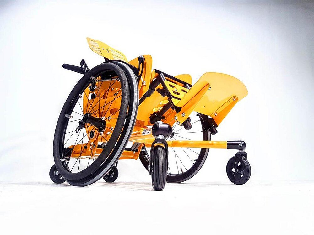 The CHILLIE is a tiltable adaptive wheelchair with swiveling seat unit for active driving children and adolescents.