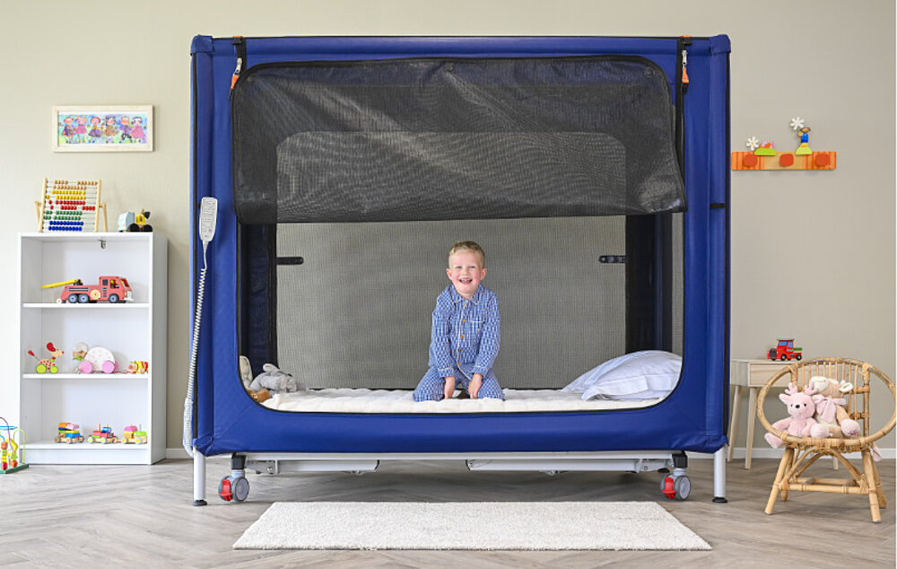 The COCOON bed is a specially developed care and safety bed for children, adolescents and adults with disabilities. It combines maximum safety, high comfort and certified hospital quality (CE & MDR). Ideally suited for physical, mental, neurological and sensory impairments as well as challenging behavior such as restlessness or wandering tendencies.