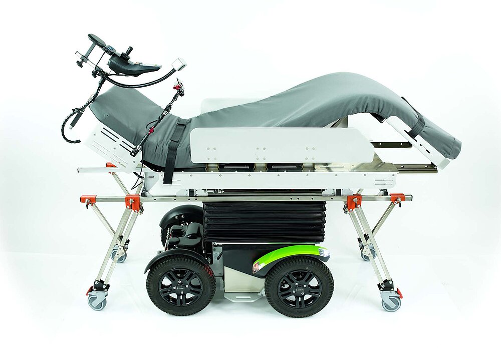 The COSEATfly by moso® is an electric reclining chair that provides a new form of mobility for people who cannot sit. The COSEATfly is equipped with the unique levitation and pressure change module COSEAT, a product developed and patented by moso. With a customizable reclining system, automatic terrain compensation, and programmable functions, it offers therapeutic benefits and autonomy. The operation is individually tailored, for example, one-touch controls and audio output make it easier for visually impaired users to handle. The COSEATfly is a customized solution for individual needs.