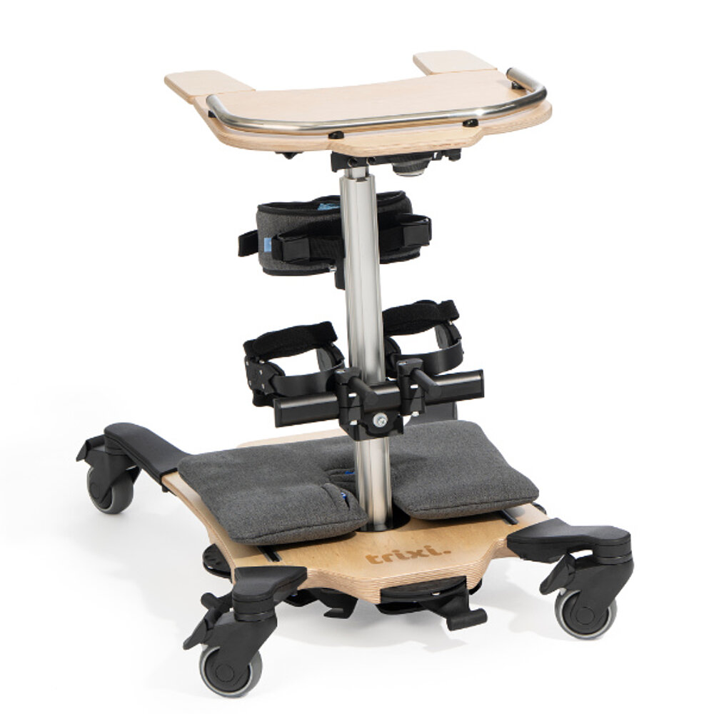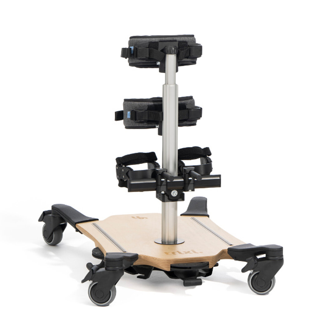 The trixi. Standing Trainer supports children and young people in active standing training and the promotion of balance, posture and trunk stability. Thanks to the dynamic function, the trainer can adapt to the child's movements and thus enables particularly natural training. Numerous adjustment options and optional accessories ensure individual customization. The trixi. standing trainer offers comfortable and therapeutically effective support in everyday life and in therapy.