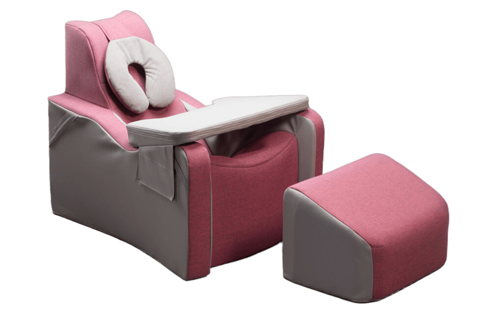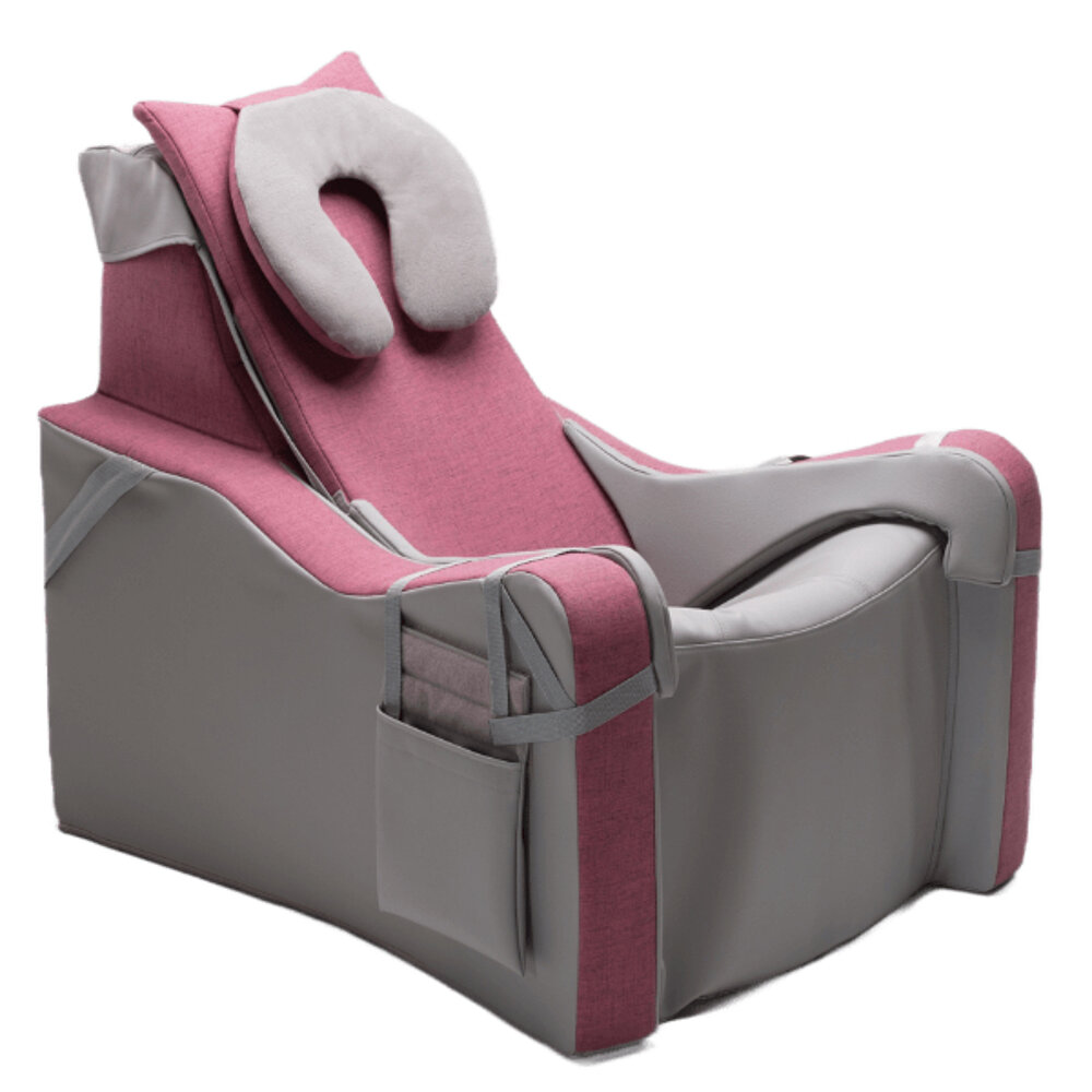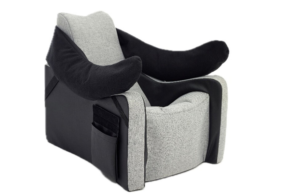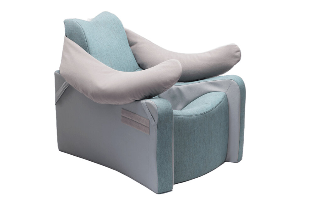 The Einstein utilizes gravity to provide the user with a stable sitting or lying position. The low placement of the center of gravity in the Einstein enhances stability. The Einstein offers close lateral body support to maintain specific body segments in therapeutically supportive positions. This helps alleviate pain, relieve joints, and prevent or treat contractures and spasms. Additionally, the Einstein allows for temporary pressure relief in the postoperative phase.
