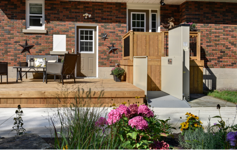 The Elevex is a robust platform lift for outdoor use and can overcome height differences of up to 1829 mm. The simple spindle mechanism ensures reliable, trouble-free operation, while the free-standing design with low overrun dimension enables space-saving installation. The Elevex is quick to install, easy to maintain and particularly cost-effective thanks to its foundation-only mounting. The lift is optionally available with a door at the top landing.