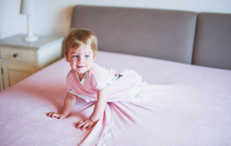 The child has plenty of freedom of movement and can turn and sit up. A fixed blanket can be packed up small and taken anywhere and fits any normal bed (90cm/200cm). It is available in many sizes and for different mattress formats.