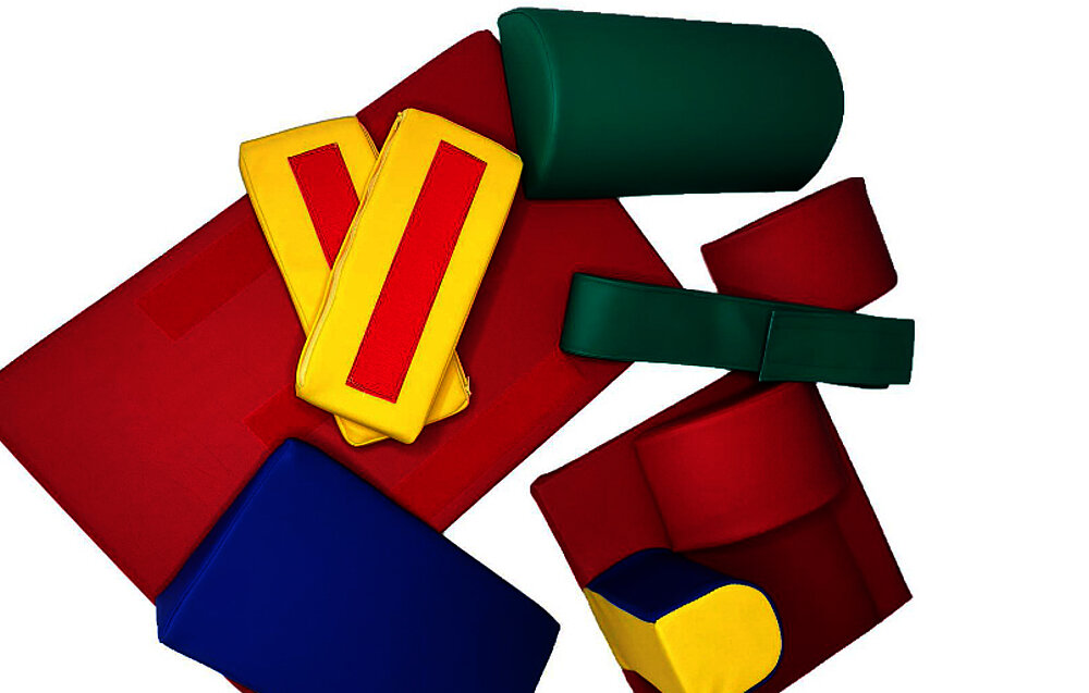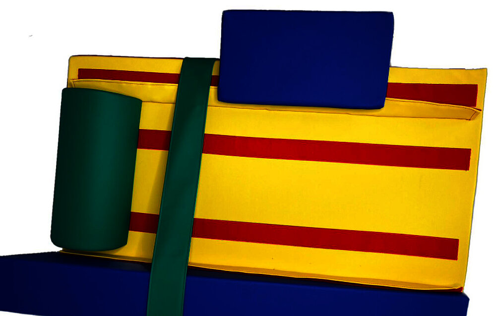 - basic equipment: basic wedge with removable side parts, abduction wedge, two fixation belts, two half-round cushions, two side cushions, half-roll, insert wedge, elevation part, rectangular