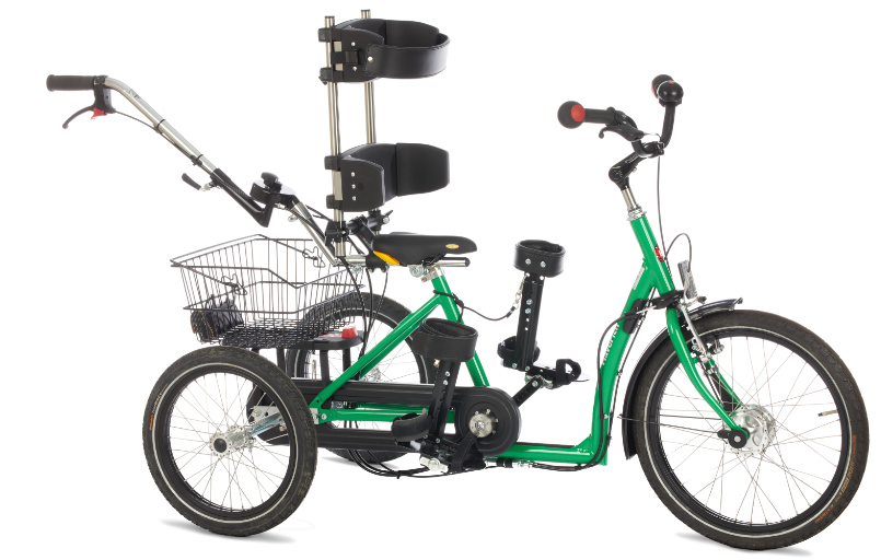 The Haverich 20/16 ALU TE tricycle has been specifically designed for children aged 5 to 8 years, offering a variety of equipment options and a solid basic configuration. The tricycle features an aluminum frame with a low entry point, making it easy for children to mount and dismount. In its basic configuration, it is equipped with a fixed sprocket that allows both forward and backward movement. Other drive forms are optionally available. The tricycle is equipped with a front wheel rim brake and a front wheel drum brake, ensuring reliable braking performance. A parking brake lever allows for secure parking. The Haverich 20/16 ALU TE tricycle has the HMV number 22.51.02.0003 and the following dimensions: The minimum distance from the saddle top to the pedals is 50 cm and is continuously adjustable upwards. The total width at the rear axle is 78 cm, and the overall length is 145 cm. It has a maximum load capacity of 60 kg and a wheel size of 20 inches (47 - 406) on the front wheel and 16 inches (47 – 305) on the rear wheels.