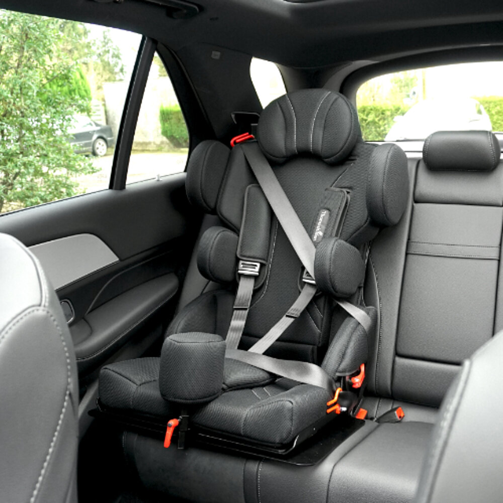 Die Drehkonsole erleichtert das Ein- und Aussteigen sehr. Seine Optik ist recht unauffällig. Trotzdem hätte unsere Tochter sich über ein paar Farbvarianten gefreut. Es gibt ihn wohl nur in einem freundlichen Schwarz.