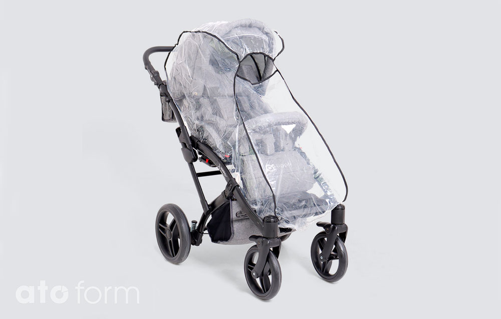 Es gibt einen Fußsack sowie ein Regenschutz und das Sonnen- und Windverdeck ist angenehm groß und schützt gut vor Witterungseinflüssen.