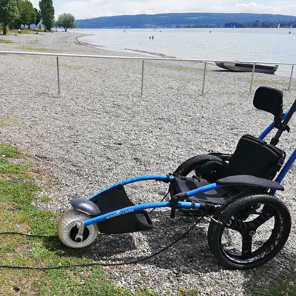 Wir haben den Rolli am Strandbad in Radolfzell für unseren Teenie ausleihen können. Er war super! Besonders, weil er zwei verschiedene Räder hat. Mit den einen kann man zum Schwimmen ins Wasser fahren. Mit den anderen schwimmt der Rolli wie eine Luftmatzratze oder ein Paddelboot oben. Das war ein Riesenspaß. Einziger Wehmutstropfen, eine Aufsichtsperson sollte immer dabei sein.