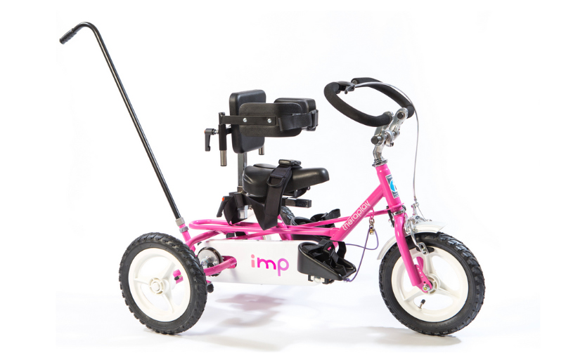 The IMP is the smallest tricycle in the range. Equipped with 12½" wheels, a small handlebar diameter and a low gear ratio, it enables easy pedaling.