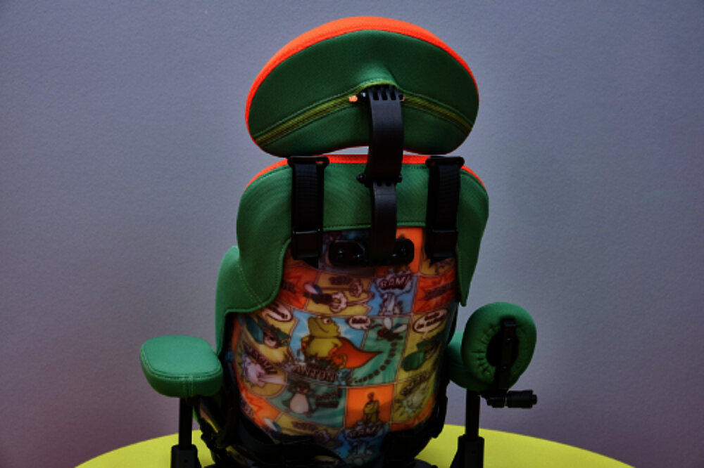 Durable, removable covers are washable, with freely selectable shell and fabric colors. A wide range of optional accessories, including tables, tablet holders and cup holders, extends usability. A hygiene version for showering or use as a hygiene chair is also available. Additionally, the system can be used as a child car seat including an ISOFIX adapter.