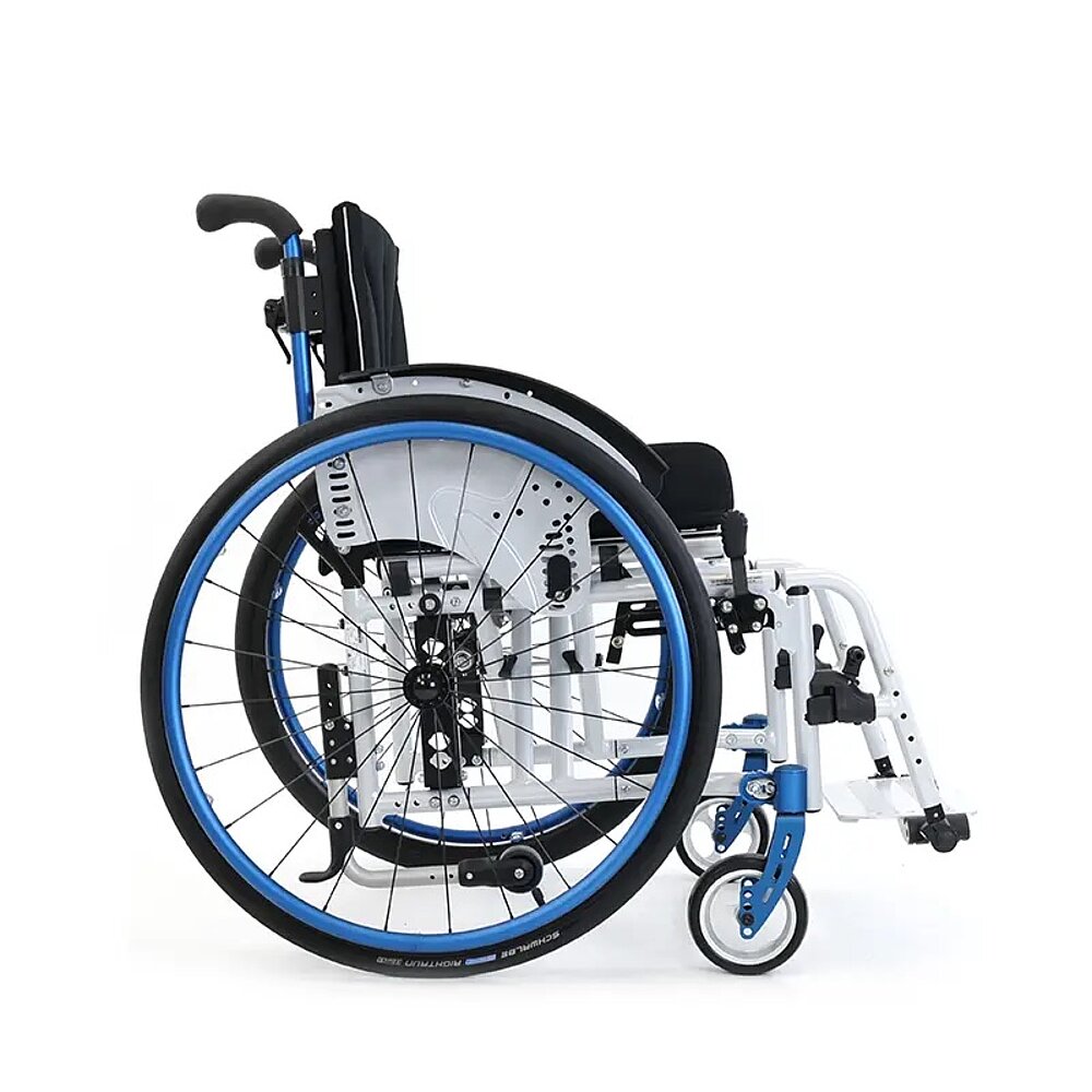 The Jump beta BSA is a foldable wheelchair with swing-away leg supports that enables inclusion throughout one's life. With its wide range of features, it offers a broad therapeutic spectrum and specific therapeutic benefits. The wheelchair is available in an XL version, designed for particularly tall and large individuals.
