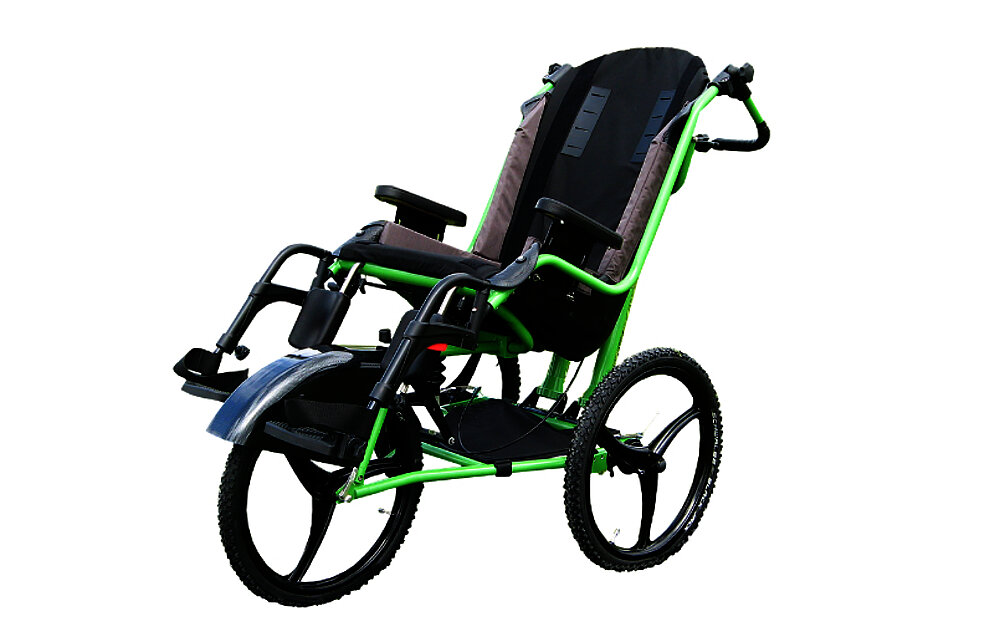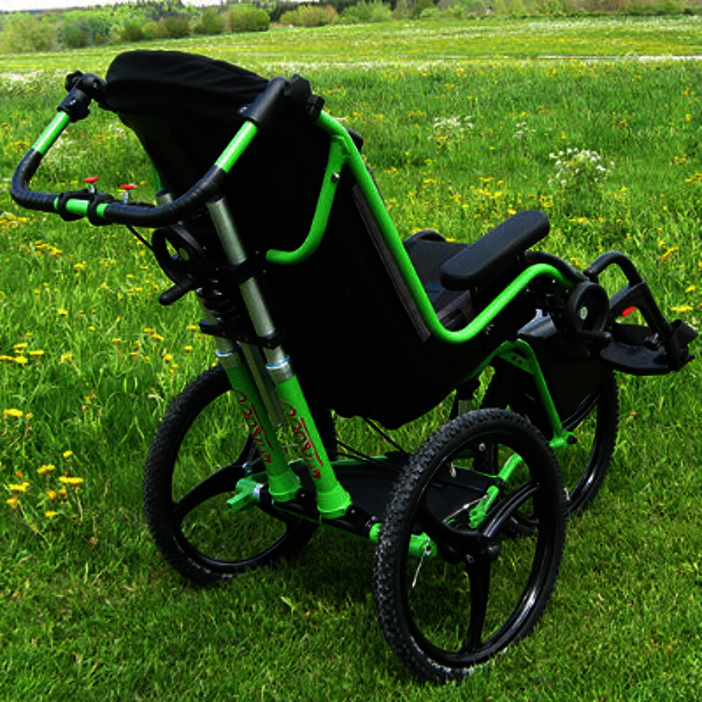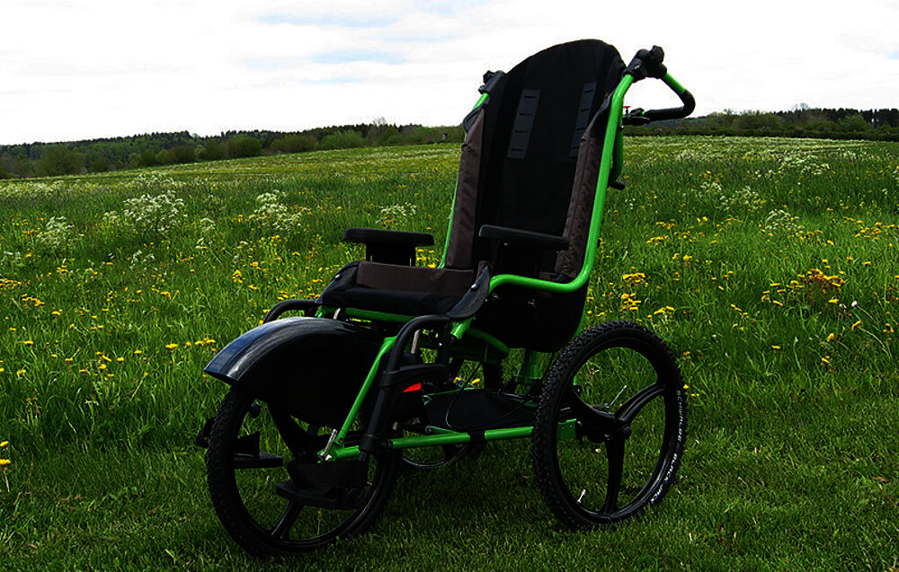 The Largoo wheelchair buggy is unique. It combines the advantages of a wheelchair with those of a buggy. It is available in two sizes and in two seat shell variants: either side-closed or with armrests. The low entry and the swivel and telescoping calf and leg supports can be ideally adjusted to the needs of the users. The seat shell is also infinitely adjustable and can be continuously tilted, inclined, raised, and lowered by a mechanical lifting device. The all-terrain hybrid of wheelchair and buggy can optionally be ordered with a push and brake assist.