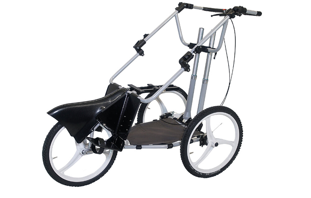 The "Kangoo Multi" seat shell base frame is the ideal solution for active families looking for a flexible product for their leisure activities and who have or want to have a custom-made seat unit. The infinitely adjustable tilt system of the seat unit and the additional infinitely adjustable height adjustment of the base frame offer optimal adaptation in conjunction with custom-made seat shells. Also included as standard is a mounting set that allows the use of trapeze adapters from different manufacturers. Special customizations, such as those for reclining transports, can also be realized with the "Kangoo Multi."