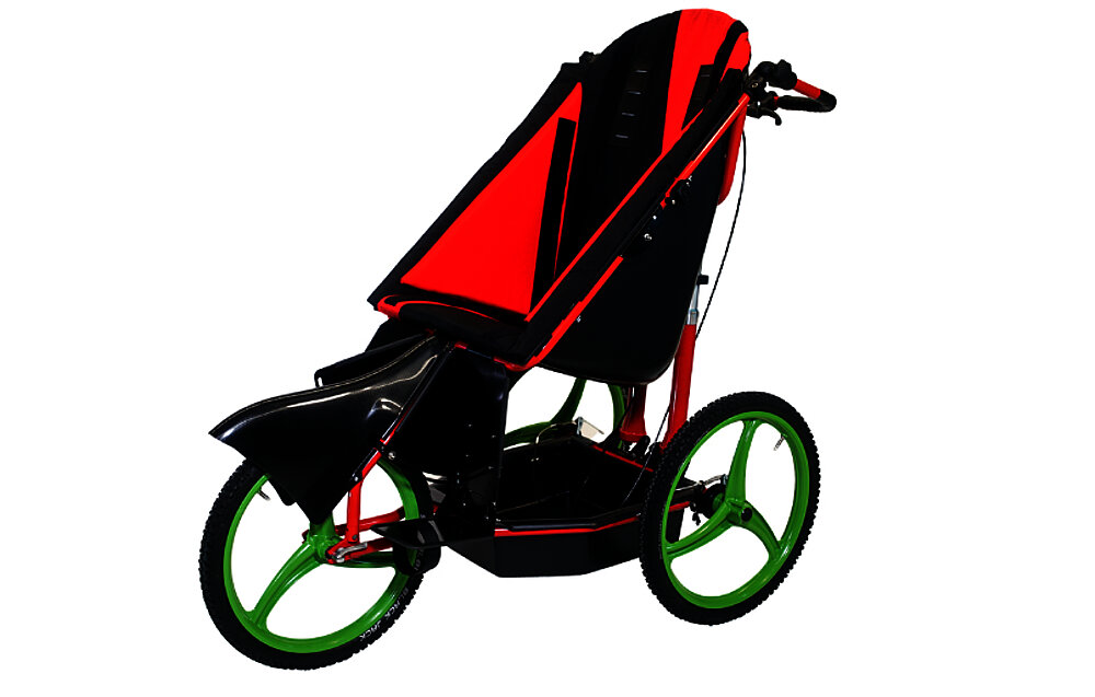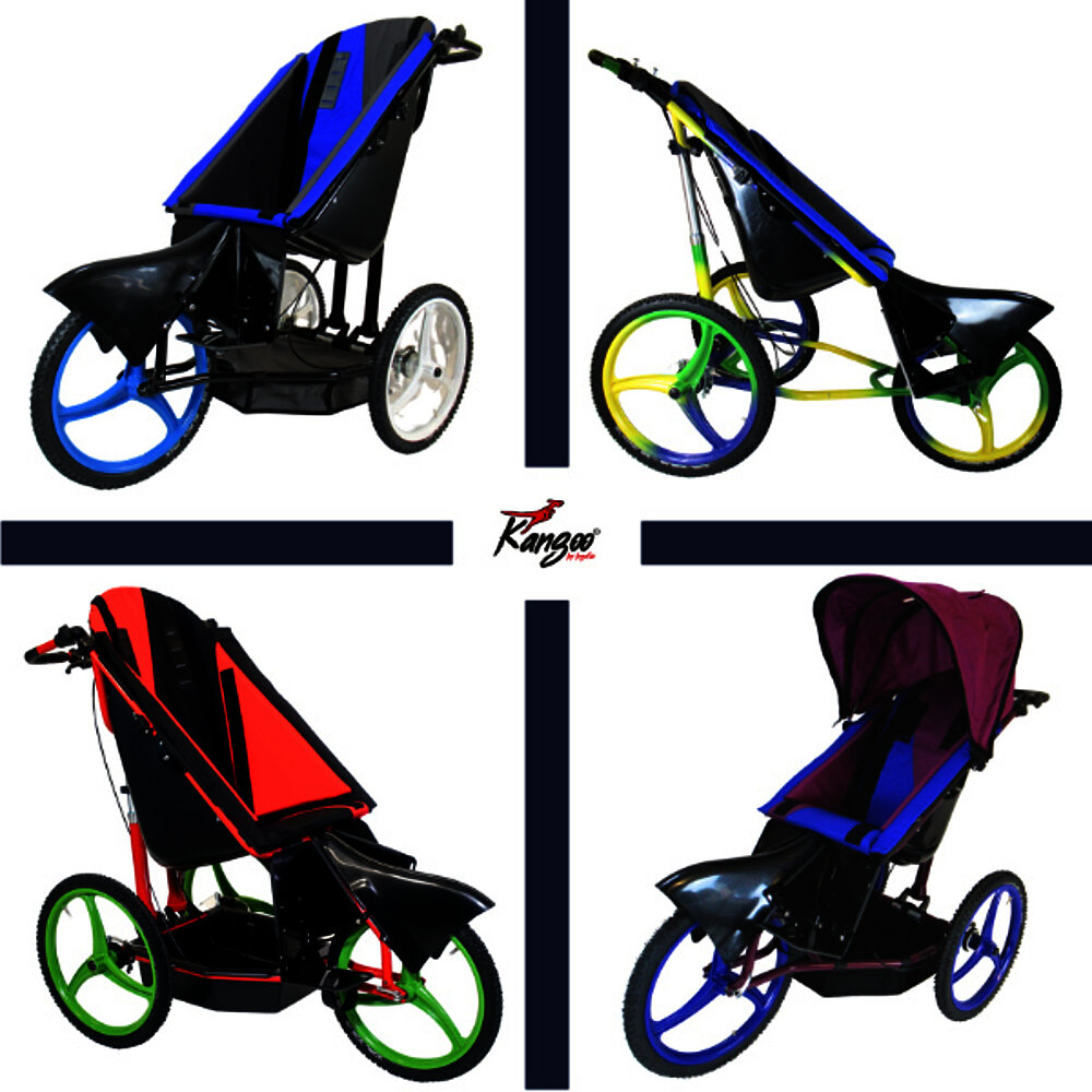 The Kangoo Vario is flexibly adjustable and offers the possibility to convert the all-terrain and fully suspended rehab buggy with 20" spoke wheels into a bike trailer. This makes it particularly suitable for active families who want to explore nature together. With the optional steerable 10" wheels, it is also ideal for activities and tours in the city. It can be stored in a small car trunk with just a few simple steps. The infinitely adjustable and telescoping footrests make it a popular buggy, especially for families with spastic children. Custom adjustments and special solutions are easily possible with the Vario.