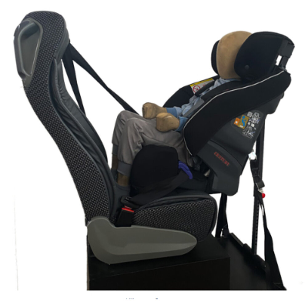 - fitted with the 3-point vehicle harness and also has a support foot and tensioning straps