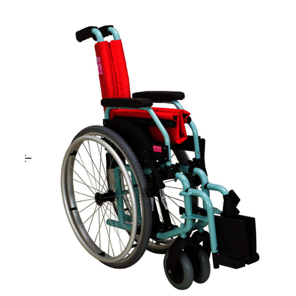 There is a choice of either 550 mm rear wheels (either solid or pneumatic) in combination with 150 mm solid rubber front wheels. A Transit model with 300 mm rear wheels is also available, ideal for children who are unable to propel the wheelchair independently. The wheelchair is designed for a maximum user weight of 125 kg and is ideal for children with limited mobility.