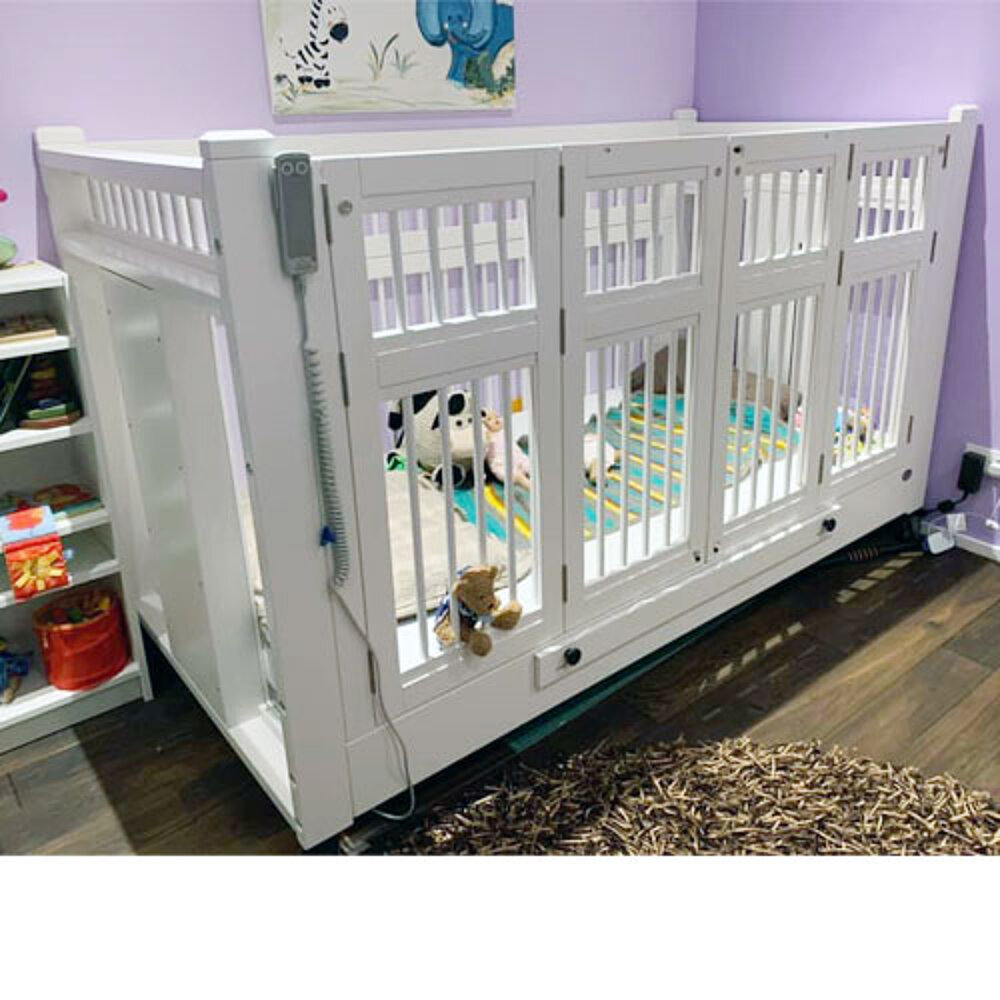 A bed that offers safe security with different border heights and promotes your child's mobility. In the "low entry" variant with only 20cm top edge of the mattress and in the standard 32cm, this bed enables maximum independence for your child and the necessary security during sleep. The therapy and care height varies between 90cm and 102cm depending on the model. Whether bars or acrylic glass, colour applications, pure nature or completely lacquered, there are no limits to your imagination. The electric head and foot section adjustment offers further positioning options. This option can only be combined with "low entry" with brake rollers.