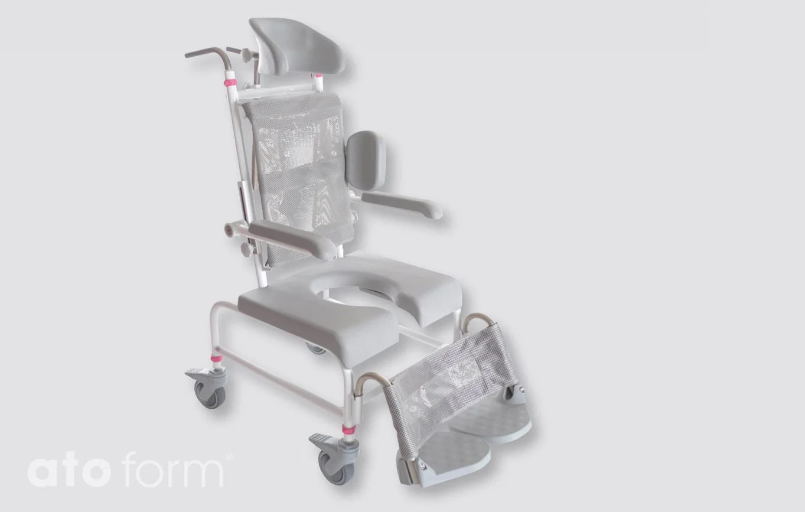The M2-Mini series shower and commode chair is an aid for the sanitary area, especially for smaller patients.