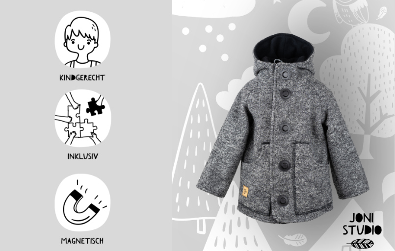 - Up to size 116/122 with pointed hood. 128/134 with round hood.