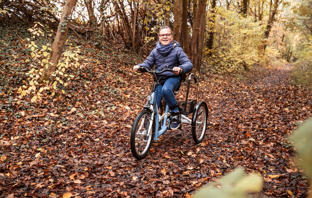 Er kann damit super selber fahren, die Anpassung für ihn war „von der Stange“ machbar und er hat großen Spaß dabei.