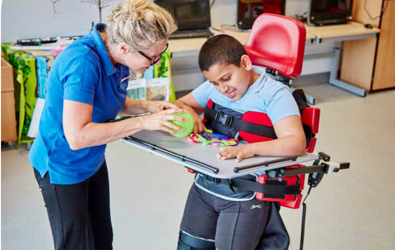 This system provides a comprehensive solution for standing therapy, allowing children to experience different positions for maximum comfort and support – all in one device. Additionally, the Multistander 1 is available, designed for younger children aged approximately 9 months to 6 years.