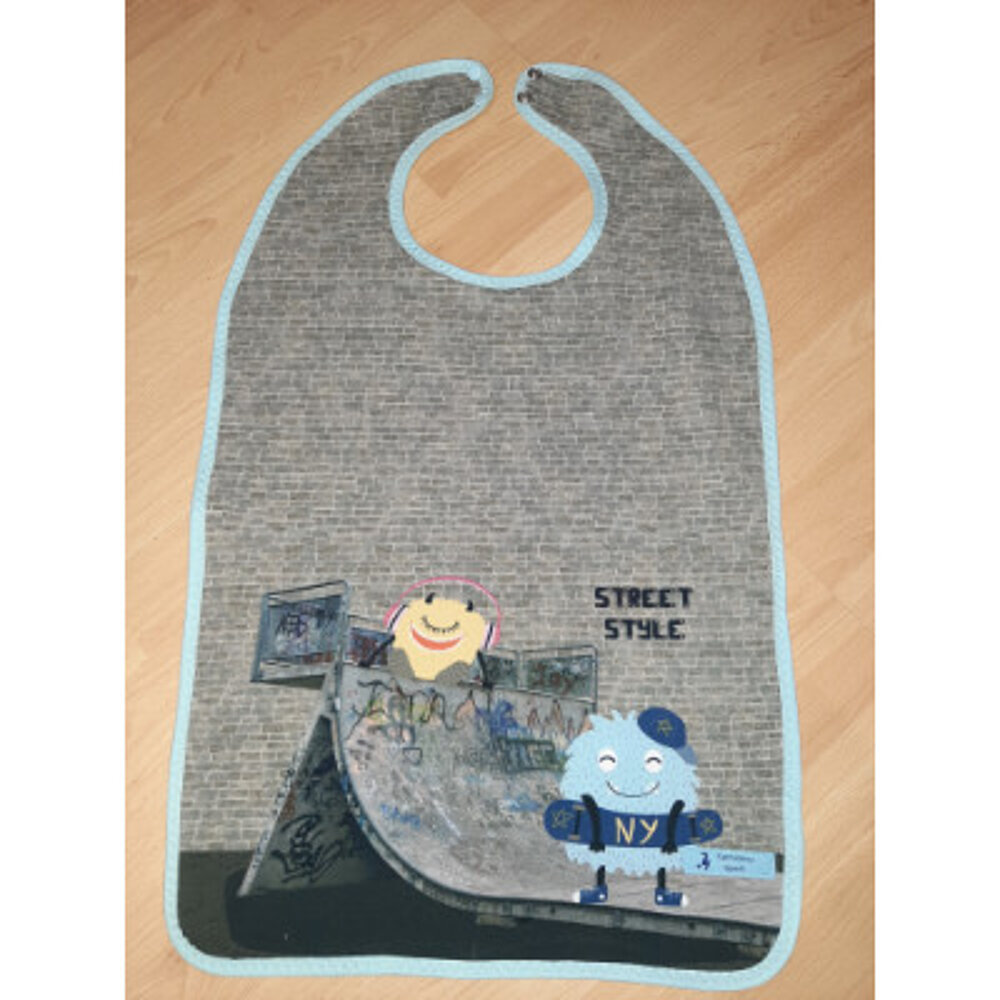 - the neckline of the slip-on bibs is trimmed with cuffs and individually cut according to head circumference