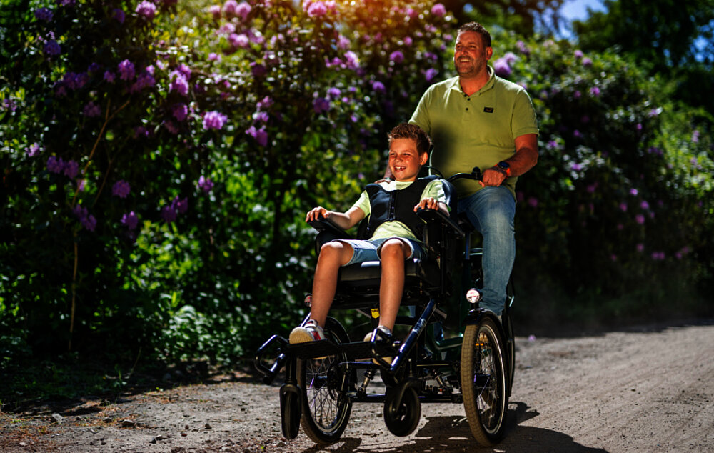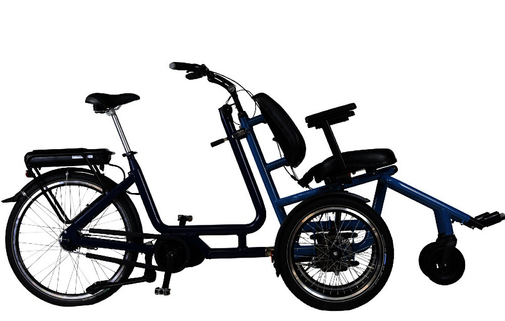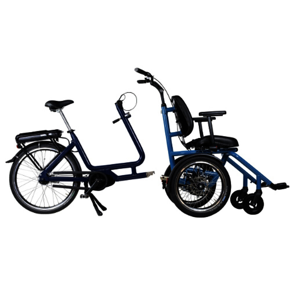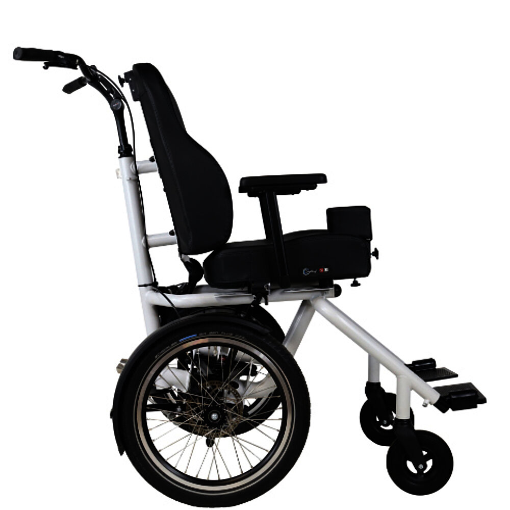 The Diaz wheelchair bike features an adjustable-height backrest and a fully adjustable foam seat. For even more comfort, the seat can be replaced with a comfort seat with an active, passive, or flat backrest. And if you'd like to take a break along the way, you can simply detach the wheelchair module and use it as a push wheelchair – ideal for joint shopping trips or café visits. A clever solution for various everyday situations.
