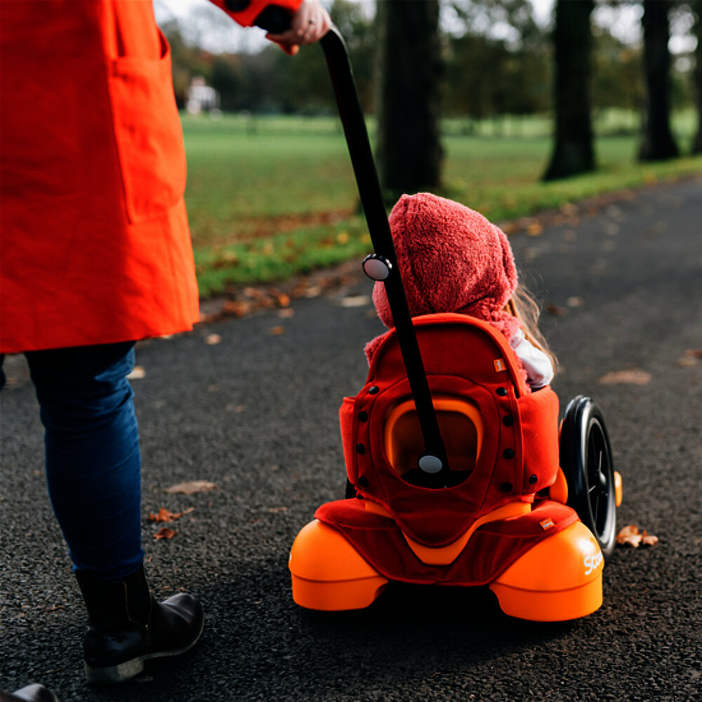 - the child can roll, crawl, scoot or be pushed with the help of the Pooosh-handle