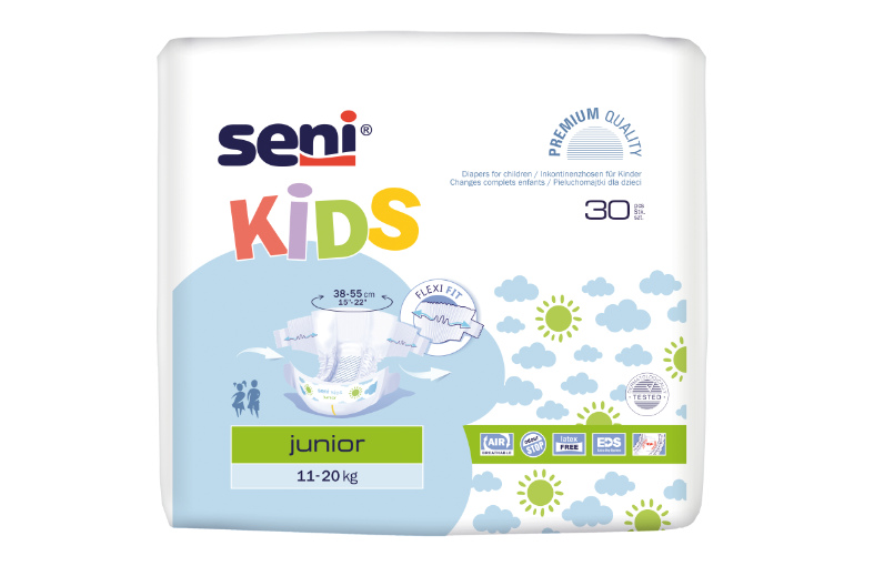 Seni Super Trio is a breathable incontinence diaper for mobile and bedridden persons. With Fit & Dry technology, it offers reliable protection and comfort. The narrow-cut crotch area and reinforced absorbent core ensure rapid moisture absorption and dryness. Hydrophobic side cuffs prevent leakage and the wetness indicator shows the optimum time to change - particularly helpful for caregivers.