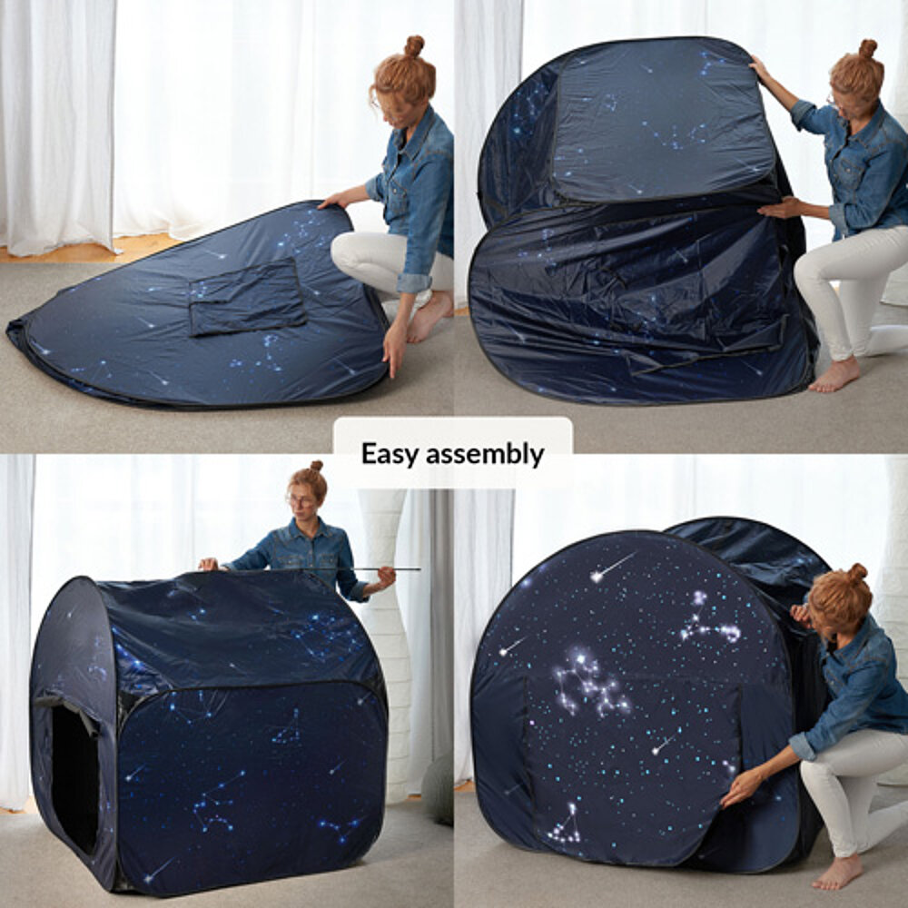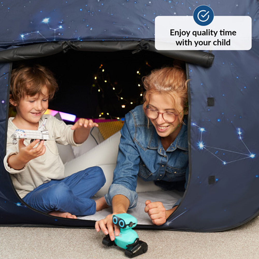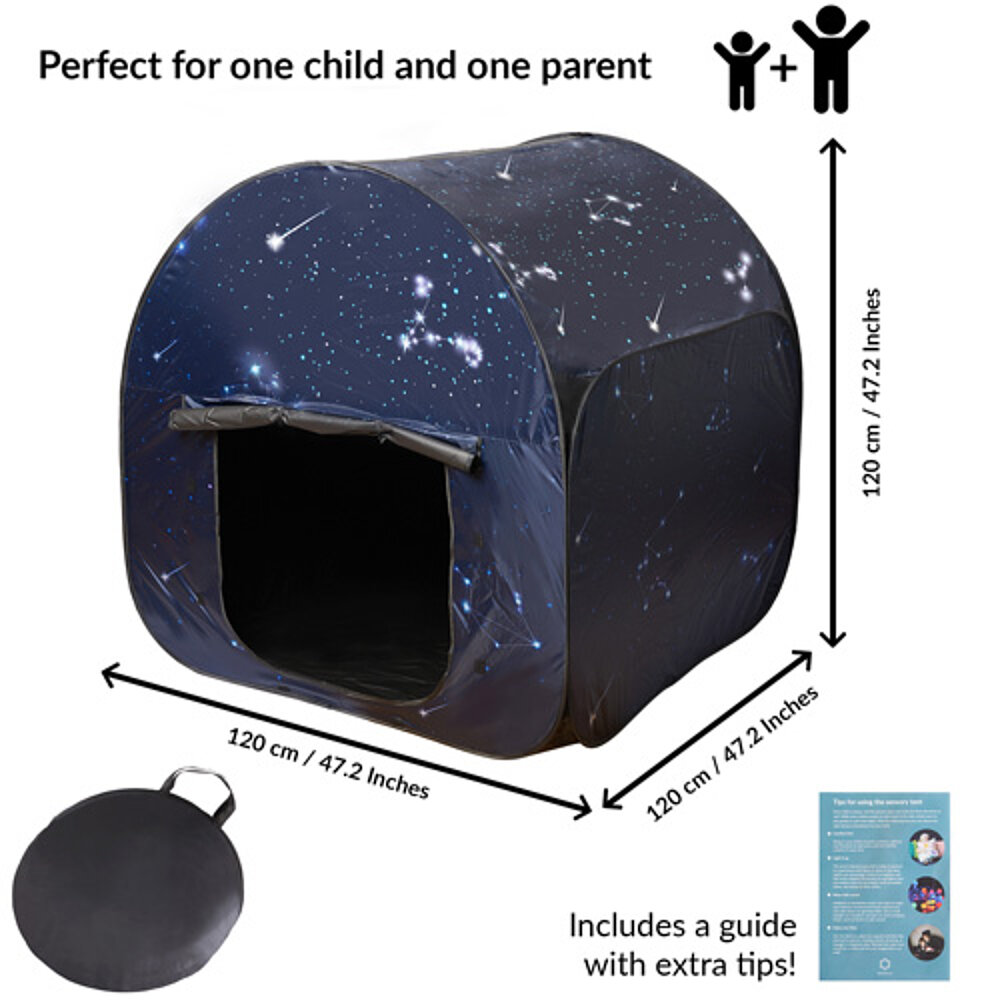 Sensory corner for children: A calm space within a space, ideal for play and relaxation. The tent provides a safe environment for children with special needs such as SPD, autism, or concentration challenges. Its blackout effect makes it perfect for light play, creating a dedicated sensory zone. Quick to set up and portable, it's perfect for home or school where a separate retreat is needed.