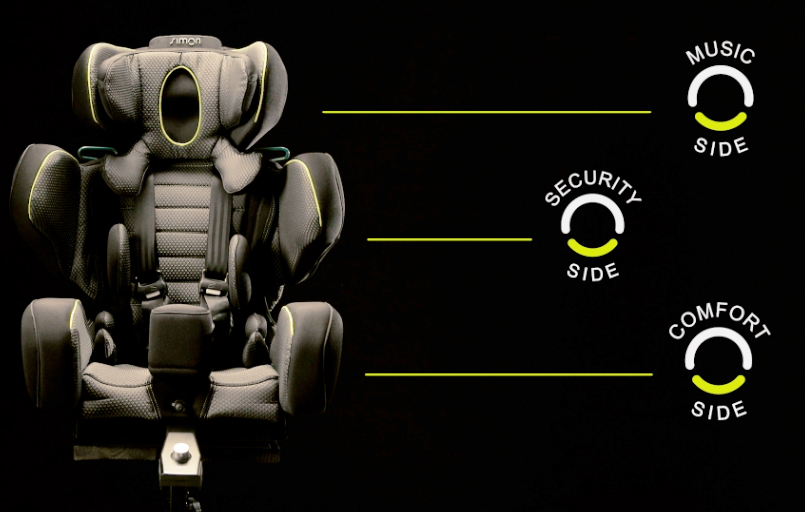Car child seat for children from 100cm to 150cm with multiple positioning options and integrated seat tilt via gas spring.