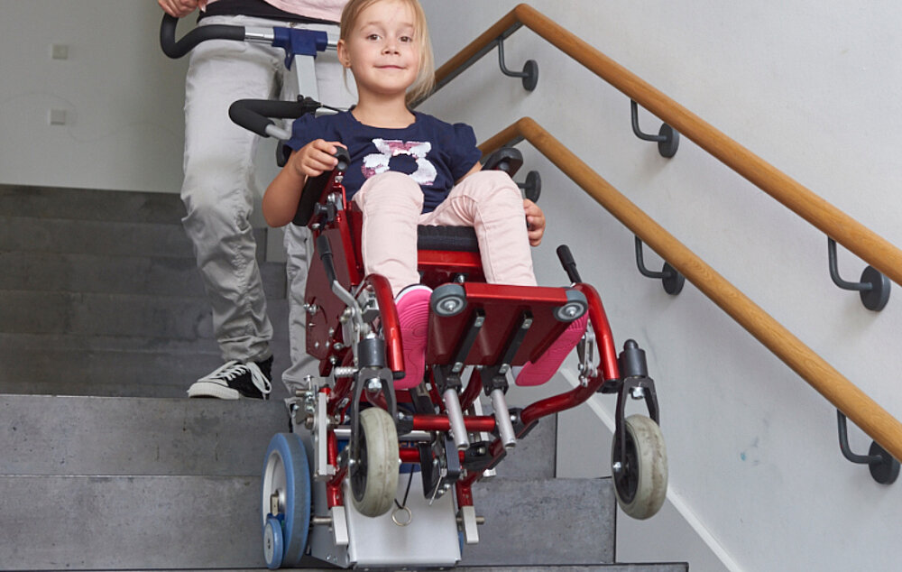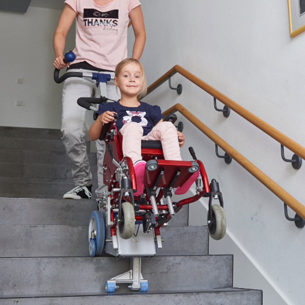 The S-MAX is the mobile stair climber for wheelchairs and enables safe, comfortable climbing of stairs indoors and outdoors. Thanks to the innovative Comfort Step function, automatic brake support and ergonomic one-handed operation, the climbing process is particularly smooth and effortless. The compact, lightweight design makes the S-MAX the ideal companion for school, work and everyday life.