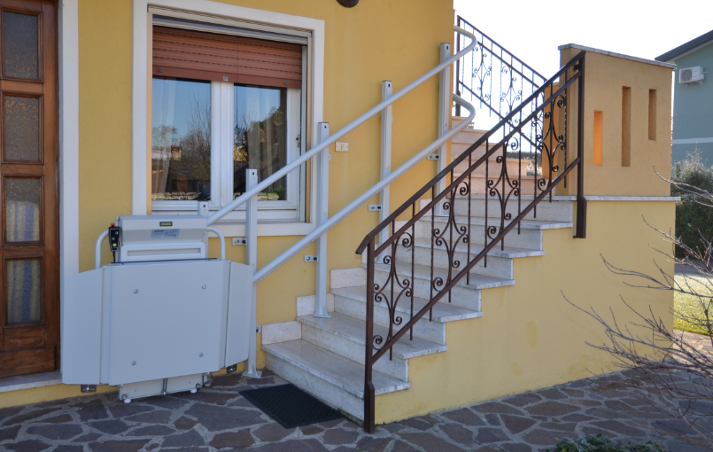 The Stratos platform stairlift impresses with its stable technology, space-saving design and versatility for indoor and outdoor use. The robust construction, clean guide rail with handrail and quick installation make it a reliable solution for greater mobility and quality of life.