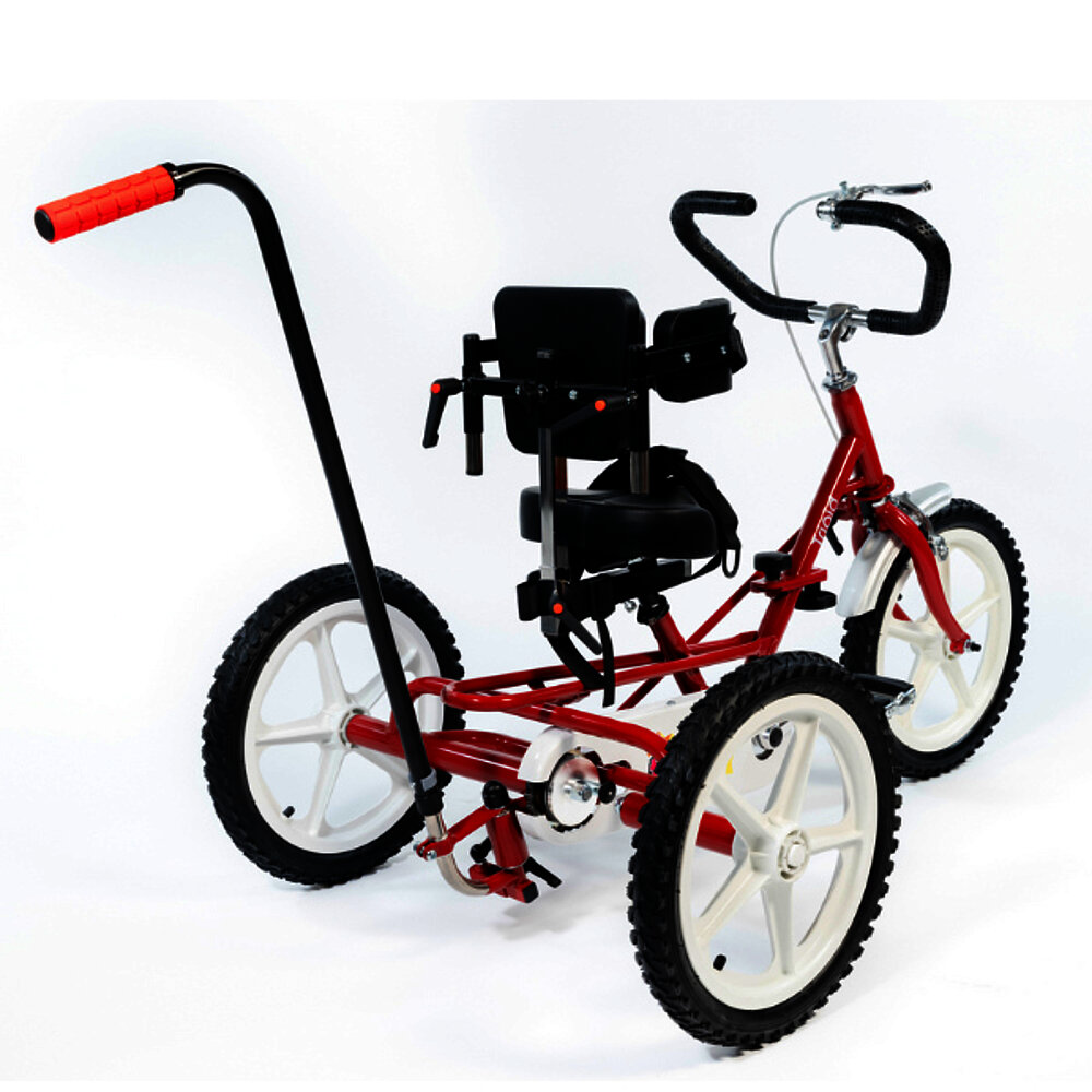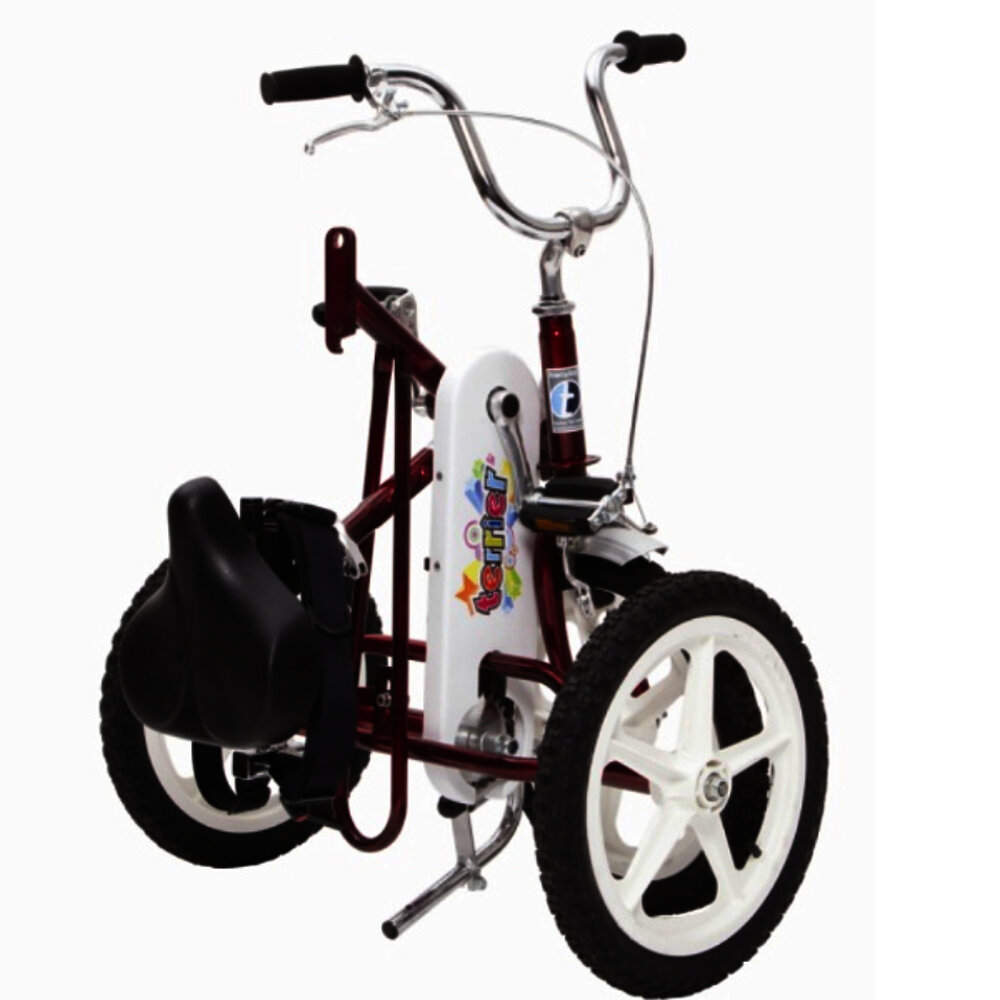 The Terrier is a stable yet lightweight tricycle with 16" wheels and caliper brakes including parking function. It has a smooth-running, rigid drive and is ideal for young riders.
