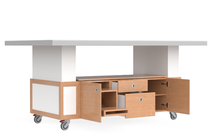 - plenty of storage space under the lying surface (available with and without base cabinet)