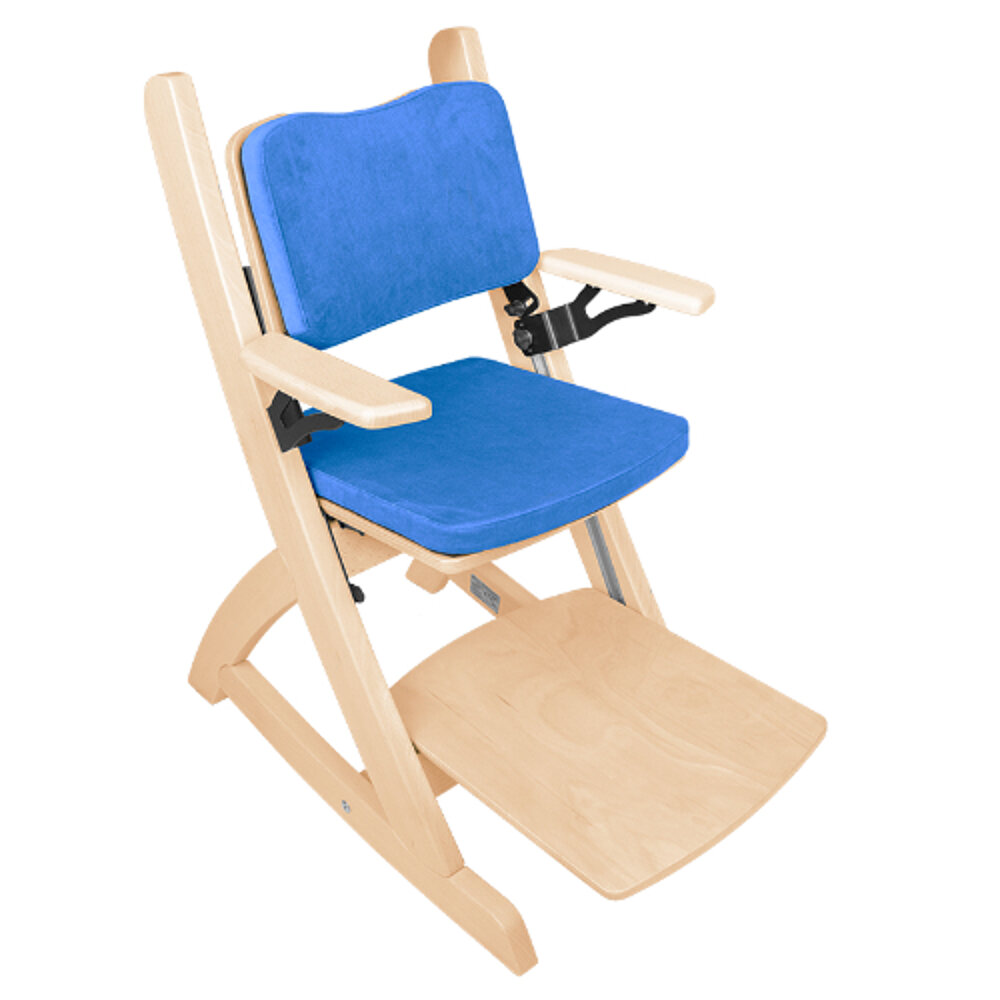 The therapy chair "Pauli" is an adjustable therapy chair designed to grow with infants, children, and teenagers. It is characterized by easy adjustments in height, depth, and inclination, requiring minimal to no tools.