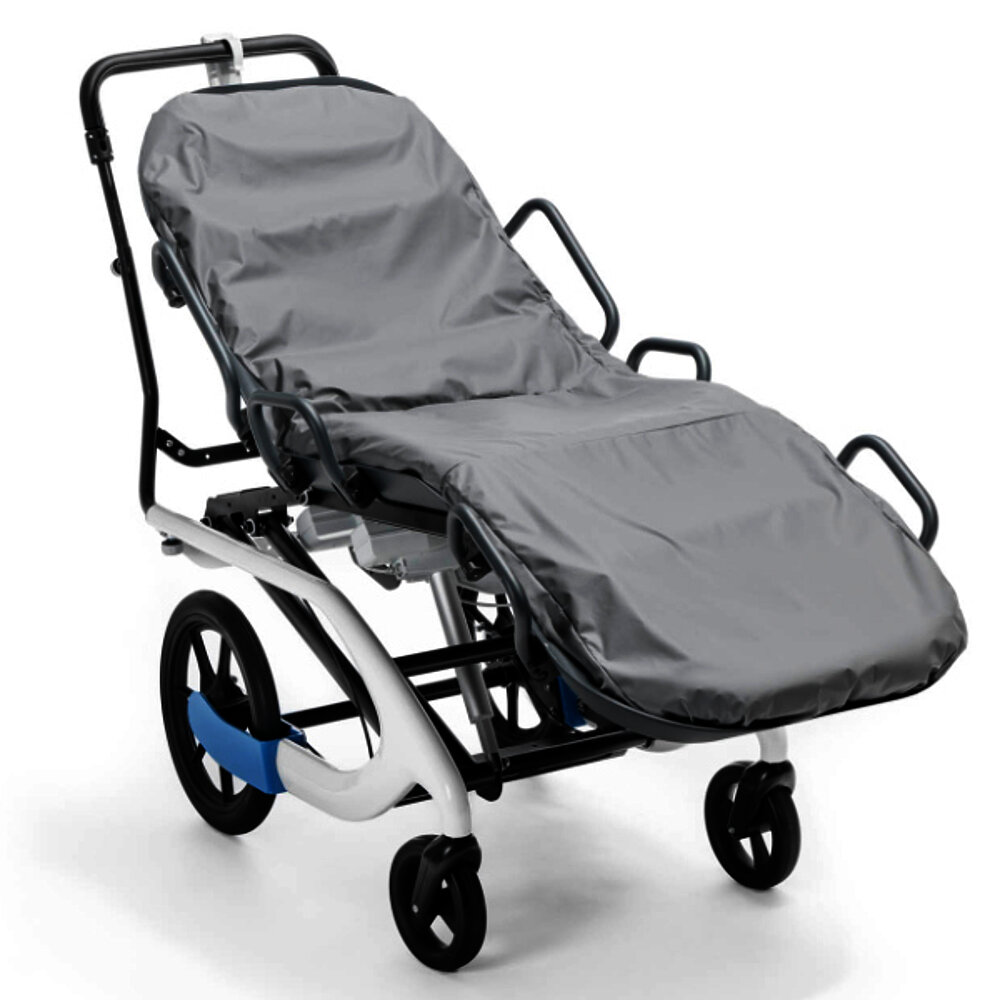 tina. is a modular seating system that offers ultimate comfort. Thanks to a vacuum mattress with an electric pump, it provides pressure-free and pain-free lying. The seating surface can be electrically adjusted in height, as well as the seat, back, and knee angles, allowing for a comfortable position even while sitting. The flexible swivel wheels make it easy to turn and push, making tina. highly mobile – perfect for walks and on the go. With a depth-adjustable seat, adjustable push handle, and sturdy 16” PU rear wheels, tina. ensures high comfort and ease of use both indoors and outdoors.