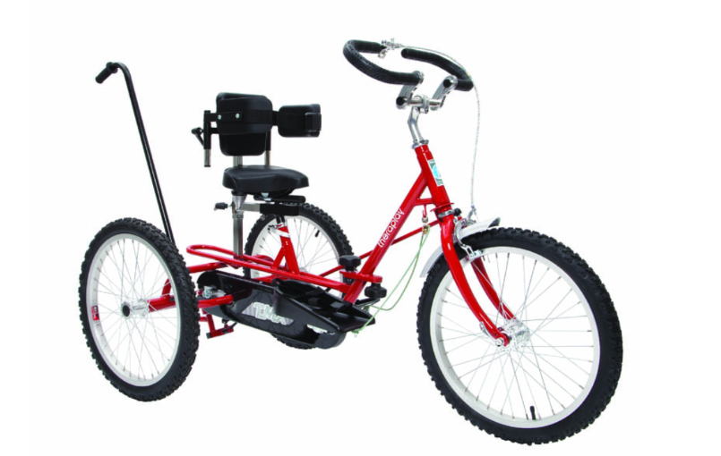 The TMX is a stable, smooth-running tricycle with 20" wheels and caliper brakes with parking function. It has been specially developed for older children and has a light, rigid drive for easy pedaling.