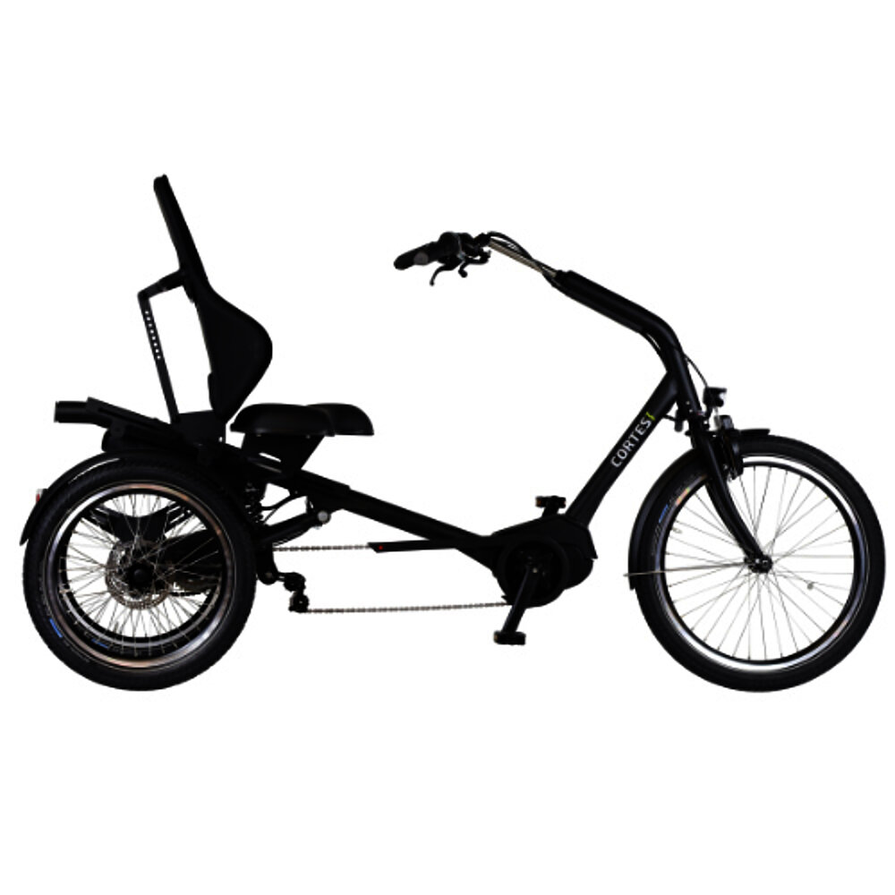 The Cortes, a masterful recumbent trike with a powerful mid-drive motor, was created in collaboration with respected seating specialists. We offer you the choice of three different seating systems, with an optional seat rotation feature. This allows you to customize your recumbent trike to your individual preferences and needs. Thanks to the low entry point, mounting and dismounting are exceptionally easy. Furthermore, this sleek trike can be effortlessly adjusted to meet your personal requirements. The Cortes is, of course, equipped with high-quality components that represent performance and quality.