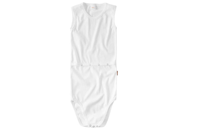 Probe bodysuit without sleeve in large sizes, classic white, made of cotton, for girls and boys.