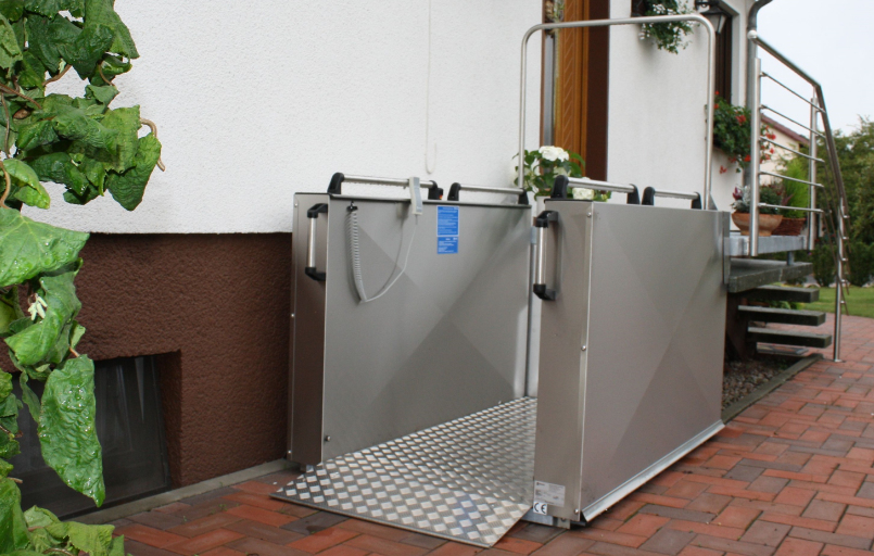 The HB930 lift is an extremely versatile lift that is suitable for various applications. It requires only minimal structural requirements, such as sufficient space with a level surface and a 230-volt connection. It is therefore easy to install and can be used in a variety of environments. The HB930 is made of high-quality stainless steel and aluminum, which gives it high stability and weather resistance. This makes it suitable for both indoor and outdoor use and can withstand a wide range of weather conditions. With a load capacity of up to 500 kg, the HB930 is capable of effortlessly transporting heavy loads such as electric wheelchairs or e-mobiles. This allows people with reduced mobility barrier-free access to different levels.