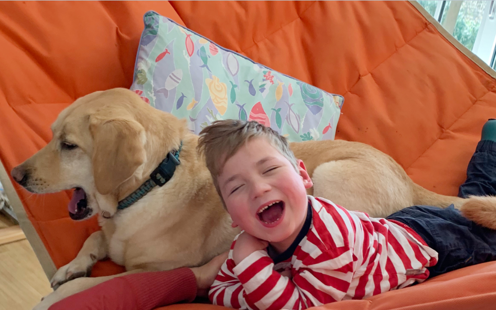 We have a small family dog. The difference the dog makes between our two kids is absolutely crazy. Our daughter (5 years old and healthy) has grown up with our dog, but doesn't have that big of a bond. Our son (2 years old and severely disabled) loves our dog. Happy lies wherever the little one lies. If he kicks her with uncontrolled movements or grabs her fur, she stays where she is. Our son feels he can do anything and he beams every time he sees her through her dark fur ?
