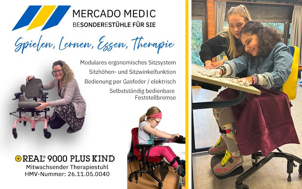 A therapy chair can ideally complement the wheelchair to support targeted therapeutic exercises, while the wheelchair provides locomotion in everyday life. Both aids together provide comprehensive support for the child's mobility and therapeutic needs.