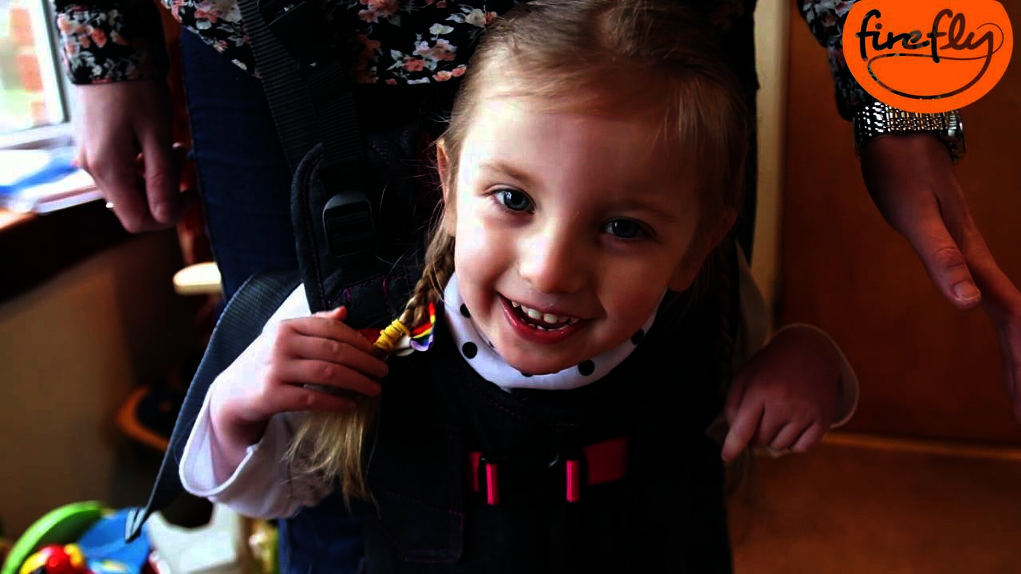 It simultaneously promotes the development of gait patterns, stamina and endurance as well as coordination skills. The Upsee is a mobility device that enables children with motor impairments to stand and walk with the support of adults. It supports the child's social and emotional development by allowing them to interact with other children at eye level. The Upsee is a popular addition to therapy programs and supports the transition from sitting to standing and walking.
